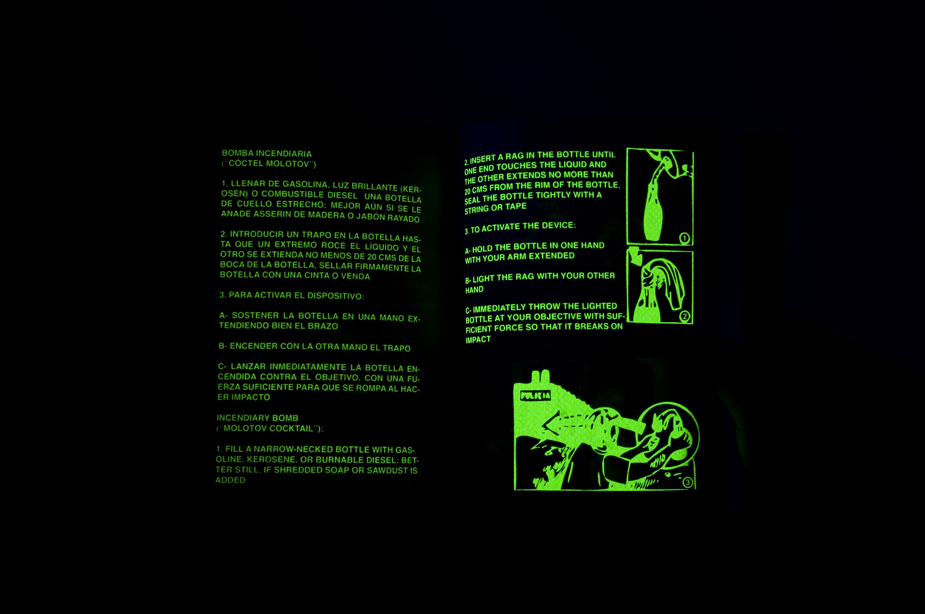 The Freedom Fighter’s Manual (CIA, 1983), glow-in-the-dark ink and archival paper.